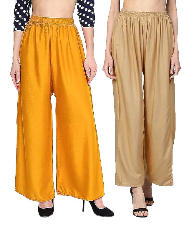 adibaba Presenting stylish and trendy women’s and girls’ rayon flared palazzo pants are the perfect blend of comfort and fashion. Made from high-quality rayon fabric, they offer a soft, breathable feel that’s perfect for all-day wear. The relaxed fit design ensures maximum comfort while giving you a flattering, flowy silhouette. The solid color adds a chic, versatile touch that pairs effortlessly with any ethnic or casual outfit. Ideal for a variety of occasions, these ankle-length palazzos are perfect for festivals, casual outings, or even a day at the office. With a waist size range from 28 to 32 inches, these trousers are designed to fit a wide range of body types. Whether you’re dressing up for a traditional event or just looking to add a stylish edge to your everyday wear, these palazzos are a must-have wardrobe essential.